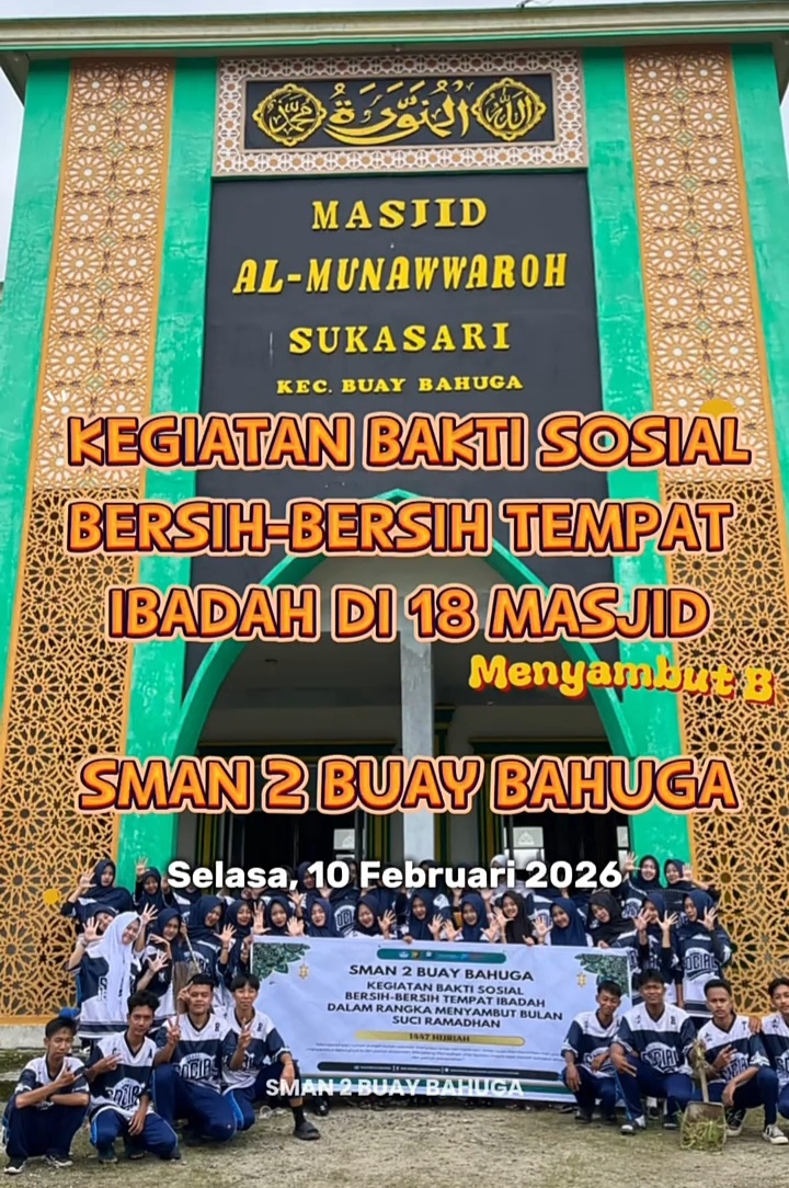 Melalui kegiatan bhakti sosial, sekolah tersebut melaksanakan aksi bersih-bersih di 18 masjid yang tersebar di wilayah Kecamatan Buay Bahuga.